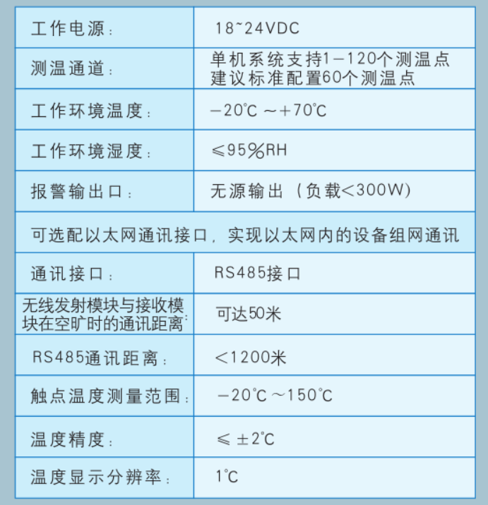 它是集在線溫度測量、數據采集、數據分析和控制功能于一體的現代化高科技產品。其測溫傳感器電源采用感應取電方式供電(≥5A)。該測溫裝置可集中采集、顯示多路電氣接點溫度(默認接收1-120個測溫點,可擴展)數據中續單元可根據現場情況進行選配。面板防護等級IP54、殼體防護等級IP20。